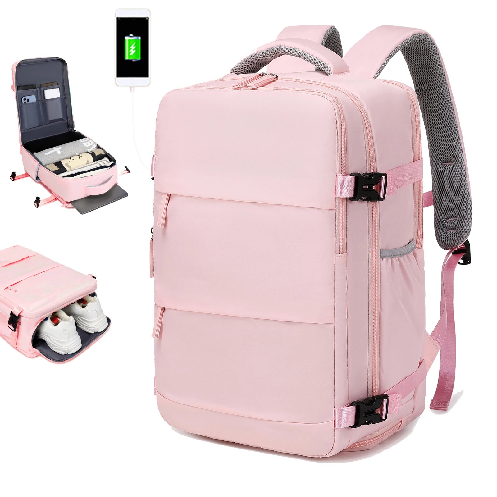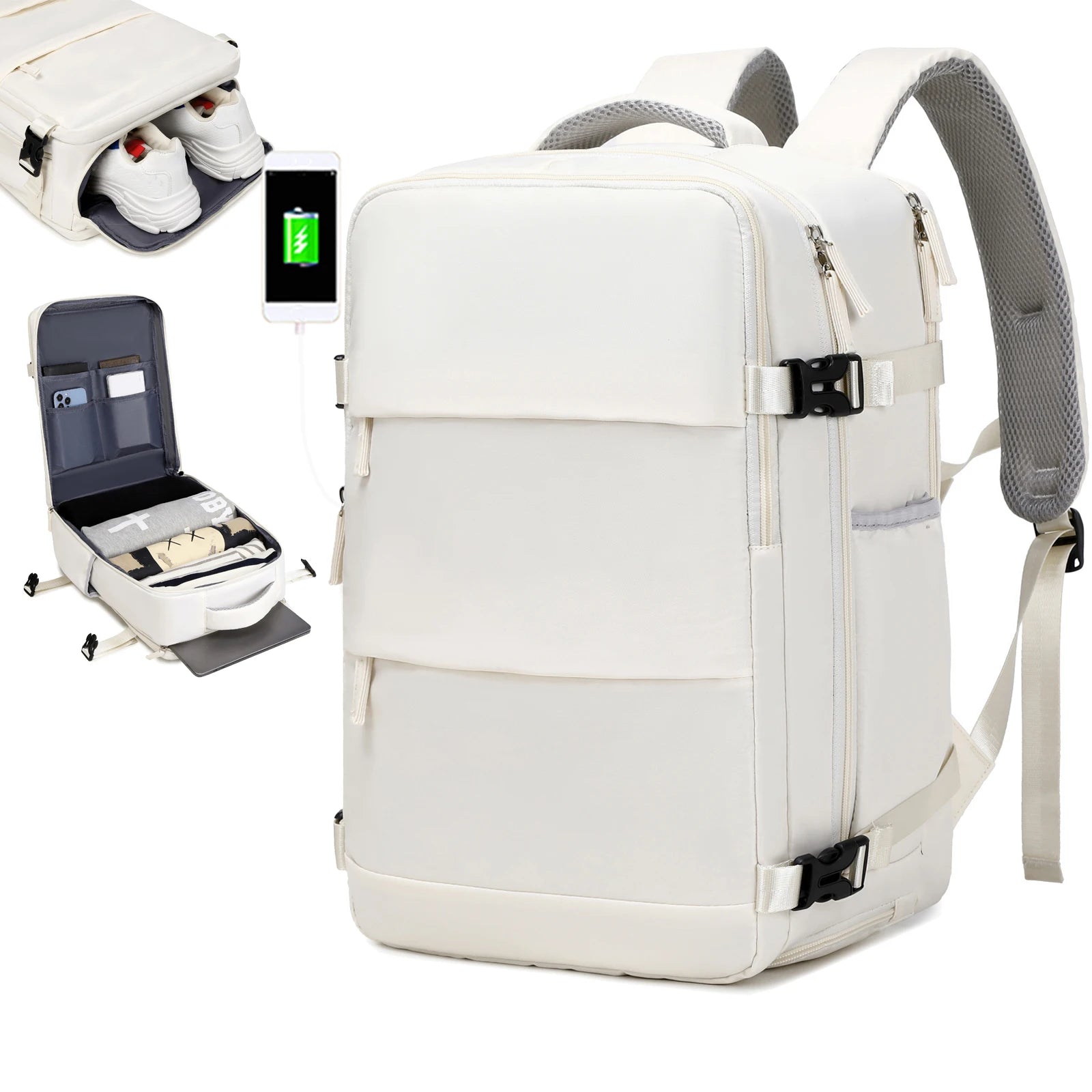 Viajar com estilo e praticidade nunca foi tão fácil! Essa mochila é a escolha perfeita para quem busca conforto e organização em qualquer viagem. Super confortável e respirável, ela é resistente à água e projetada para atender todas as suas necessidades. Possui uma argola prática para pendurar óculos e chaves, saída para power bank, bolso lateral para garrafa de água, dois bolsos frontais ideais para celular, carteira e passaporte, e compartimentos funcionais: um para sapatos, outro para tablet e livros, um compartimento seguro para notebook de até 15 polegadas e um espaço super espaçoso para roupas. Com vários bolsos internos, tudo fica no lugar certo. Além disso, ela cabe perfeitamente na cabine do avião e está dentro das medidas permitidas por qualquer companhia aérea, nacional ou internacional. Leve praticidade, estilo e versatilidade com você, onde quer que vá!